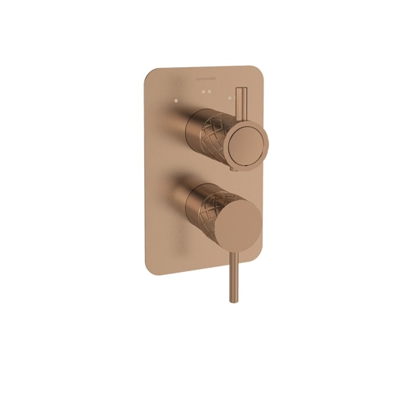 Ramon Soler Bateria prysznicowa podtynkowa, szczotkowana miedź, ODISEA JOYA z potrójnym wyjściem