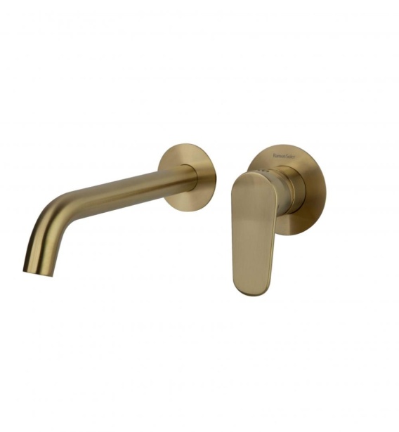 Ramon Soler Bateria umywalkowa ścienna z wylewką 24 cm, szczotkowane złoto, ALEXIA