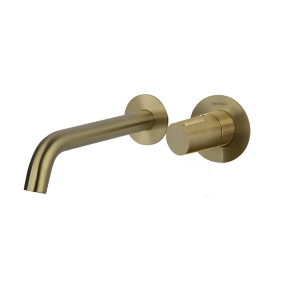 Ramon Soler Bateria umywalkowa ścienna z wylewką 24 cm, szczotkowane złoto, TZAR
