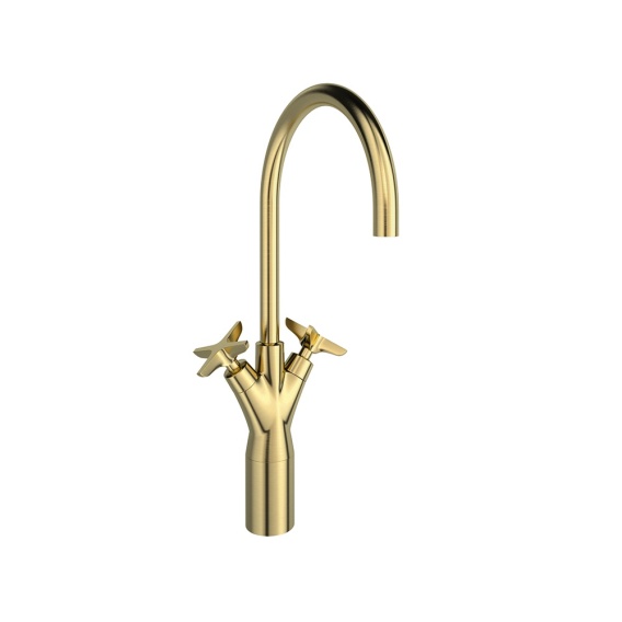 Ramon Soler Wysoka bateria umywalkowa dwuchwytowa z obrotową wylewką 190 mm, szczotkowane złoto, ADAGIO