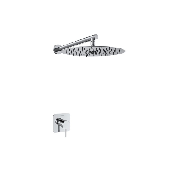 Jednouchwytowa bateria prysznicowa do zabudowy, jednokierunkowa, z okrągłą metalową głowicą prysznicową o średnicy 300 mm. System oszczędzania wody S2 z 50% oszczędnością i ogranicznikiem temperatury.