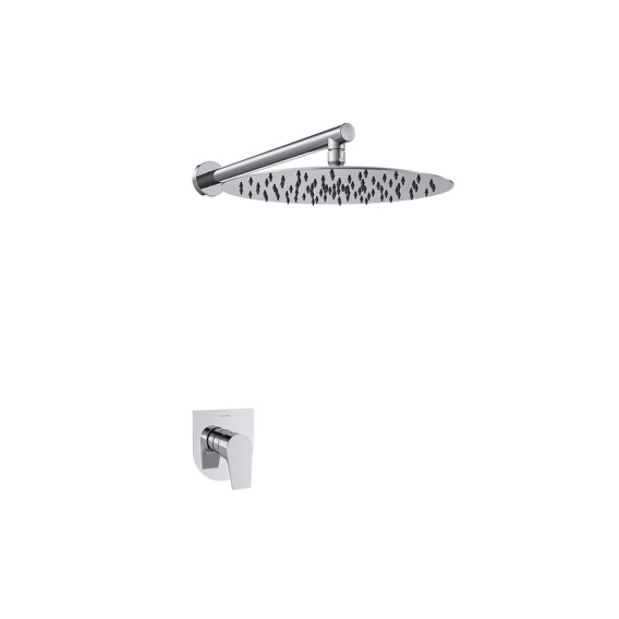 Zestaw prysznicowy jednouchwytowy do zabudowy z jednokierunkowym sterowaniem i metalową głowicą prysznicową o średnicy 300 mm, ultracienka metalowa płyta, łatwy w montażu dzięki kompaktowej obudowie, system oszczędzania wody S2 pozwalający na oszczędność 50% oraz ogranicznik temperatury.