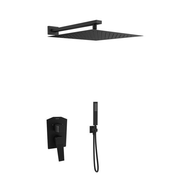 Ramon Soler Zestaw prysznicowy podtynkowy, czarny mat, PRISMA z podwójnym wyjściem