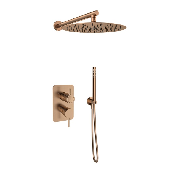 Ramon Soler Zestaw prysznicowy podtynkowy, szczotkowana miedź, ODISEA JOYA z podwójnym wyjściem