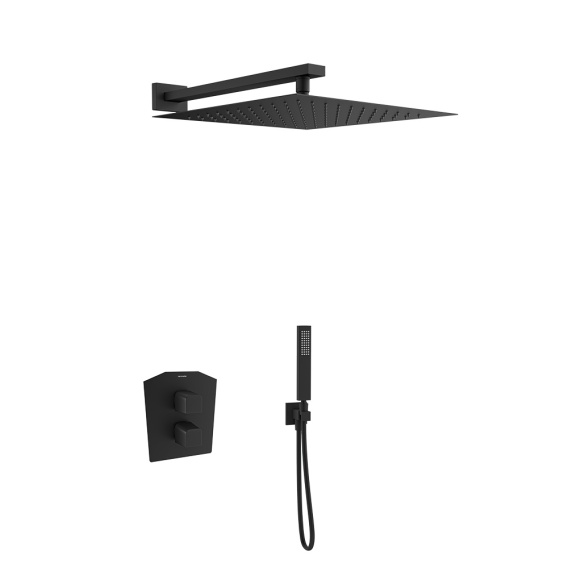 Ramon Soler Zestaw prysznicowy termostatyczny podtynkowy , czarny mat, PRISMA dwukierunkowy