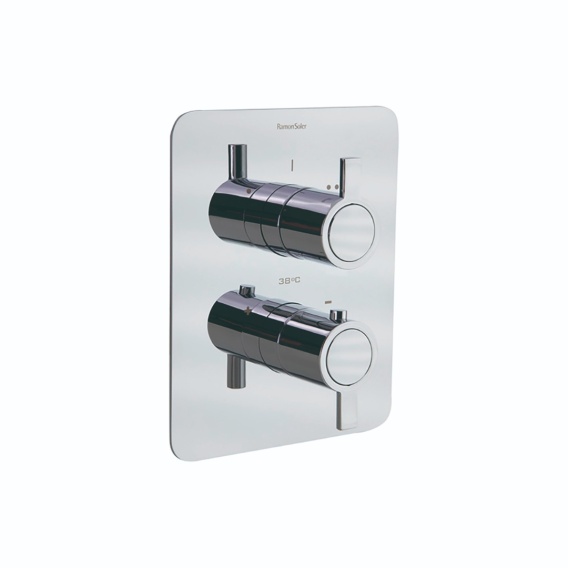 Ramon Soler Drako Bateria prysznicowa termostatyczna podtynkowa dwukierunkowa, z metalową, ultracienką płytą. Prosty montaż dzięki kompaktowej obudowie.