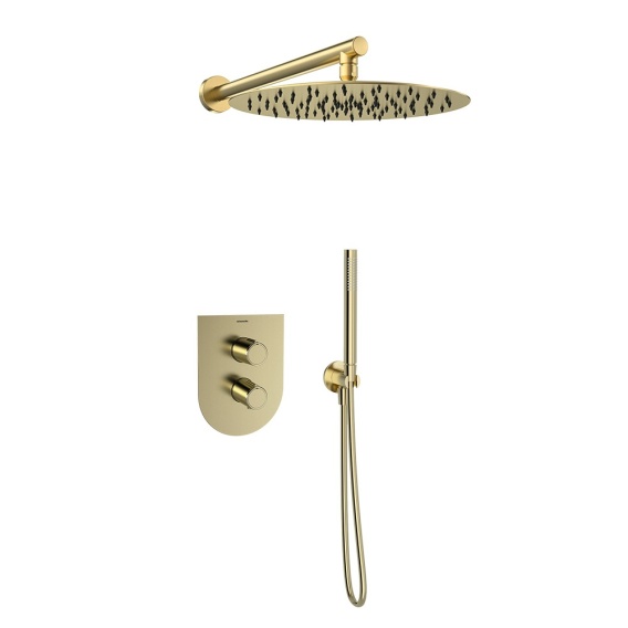 Ramon Soler zestaw prysznicowy podtynkowy termostatyczny TZAR szczotkowane złoto 2-wyjściowy