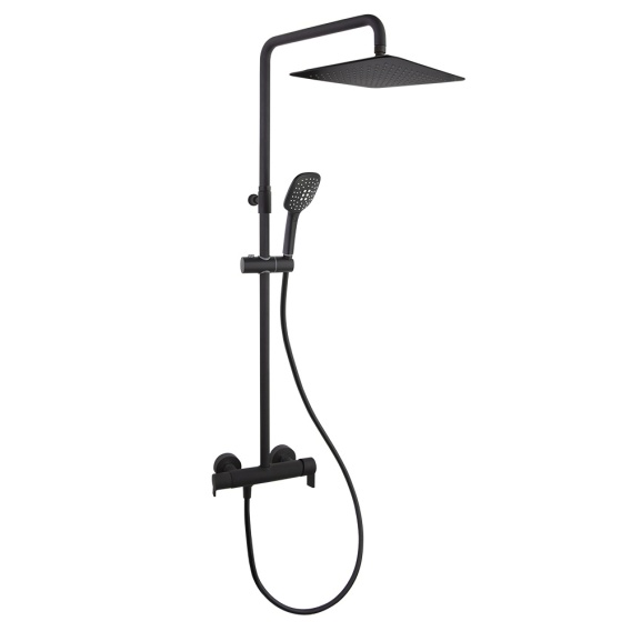 Ramon Soler Teleskopowa, jednouchwytowa kolumna prysznicowa, kwadratowa głowica prysznicowa 300x300 mm. Wyposażona w system bezpieczeństwa Hot Block chroniący przed oparzeniami oraz system oszczędzania wody S2 z dwufazową obsługą dźwigni.