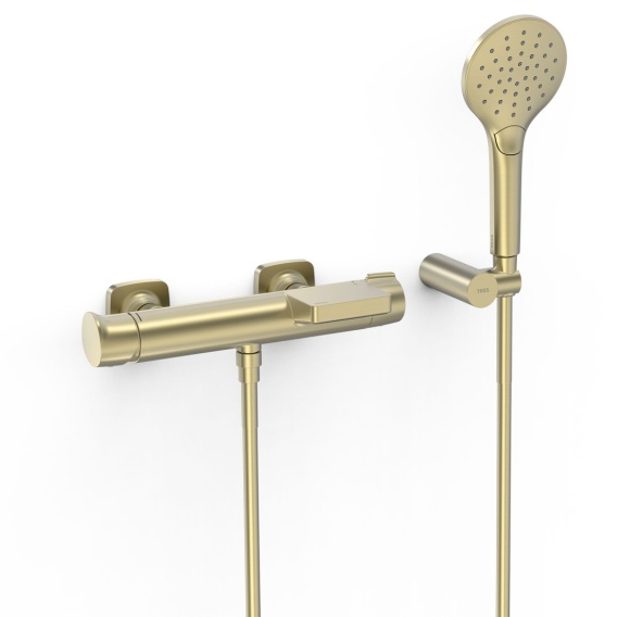 Tres bateria wannowo-prysznicowa ścienna LOFT złoty cava
