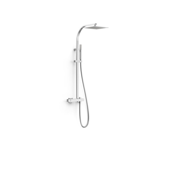 Tres CUADRO Zestaw baterii jednouchwytowej naściennej 2-drożnej prysznicowej. Deszczownia ruchoma ze stali nierdzewnej: 250x250 mm.· Regulowany i przesuwany uchwyt do słuchawki prysznicowej.· Słuchawka prysznicowa z mosiądzu systemem zapobiegającym osadzaniu się kamienia.· Satynowy wąż.